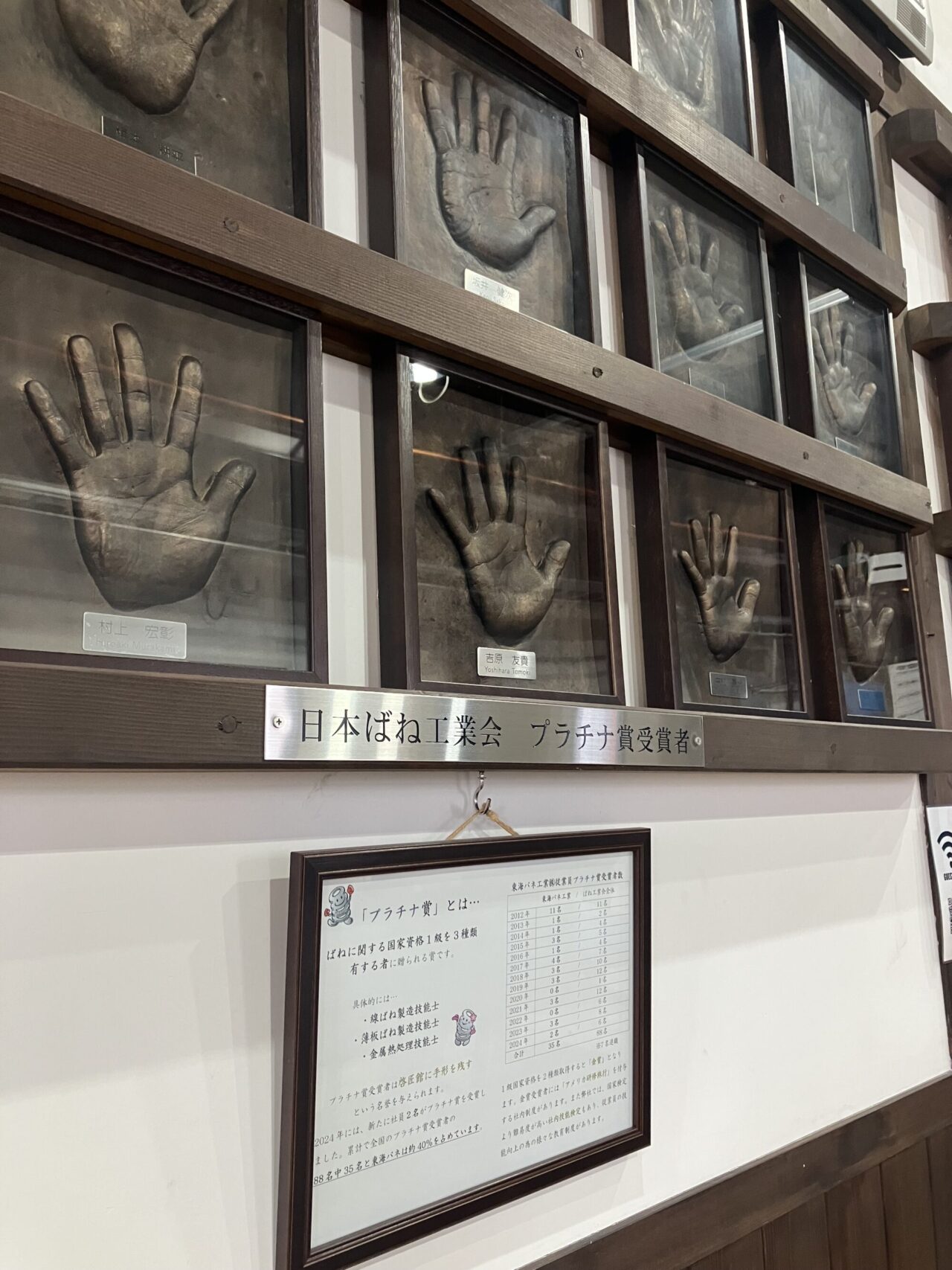 こうした高い技術力は、年間約90回の技術講義や、難易度の高い社内技能検定への挑戦を通じて、一人ひとりが技を磨き続けてきた成果です。その証に、優良ばね製造技能者認定表彰制度(一般社団法人 日本ばね工業会)の最上位「プラチナ賞」を受賞した社員が多数在籍しています。